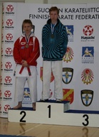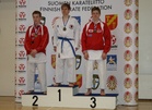 Karaten Suomen mestaruuksista oteltiin viikonloppuna 24-25.3.2012, Pyynikin palloiluhallissa Tampereella. Kilpailuun osallistui yhteensä noin 140 suomalaisen karaten kärkinimeä. SM-kilpailu oli myös yksi tärkeimmistä näyttöpaikoista kevään arvokisapaikkoja jaettaessa. Huhtikuun puolessa välissä otellaan PM-kilpailut Ruotsissa. Seuramme kisaajat esiintyivät jälleen varsin mukavasti. Jimi Helin voitti sarjansa kadetit 70kg. Martti Tyrkkö sijoittui toiseksi sarjassaan kadetit -52kg. Katassa Martti sijoittui kolmanneksi. Jännittävin sarja oli tälläkertaa kadettien -57kg sarja. Hyviä otteluita nähtiin, jännitystä riitti eikä pikku kolhuiltakaan vältytty. Sarjassa toiseksi otteli Matti Tammivuori ja pronssille Teemu Simola. Matti, Martti ja Jimi lähtevät kisaamaan PM-kisoihin ruotsiin 14.4 ! |
