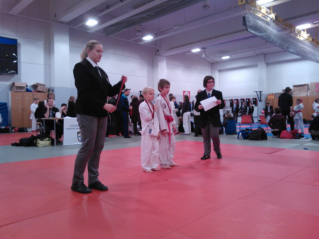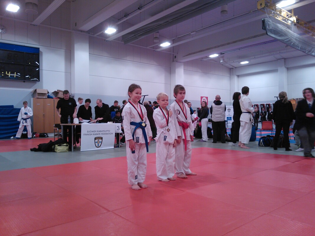 Hyvän kokoisella porukalla oltiin liikkeellä : Saloset,Lehtoset,Lanströmin Jimi,Wall Kitt ja ensikertalaiset Selinin Jesse . Martti ja Teemu. ;) Kaikilta tosi hienoja suorituksia ja mitaleita aika läjä Laitetaan kuvia kun saadaan... TULOKSIA: KATA JUNIORIT 8-9V. | | 1. Peppi Mänty | Lahden Karate | 2. Teemu Saario | Lahden Karate | 3. Jesse Selin | Ylöjärven Shotokan | 3. Onni Alanko | Porin Shotokan |
