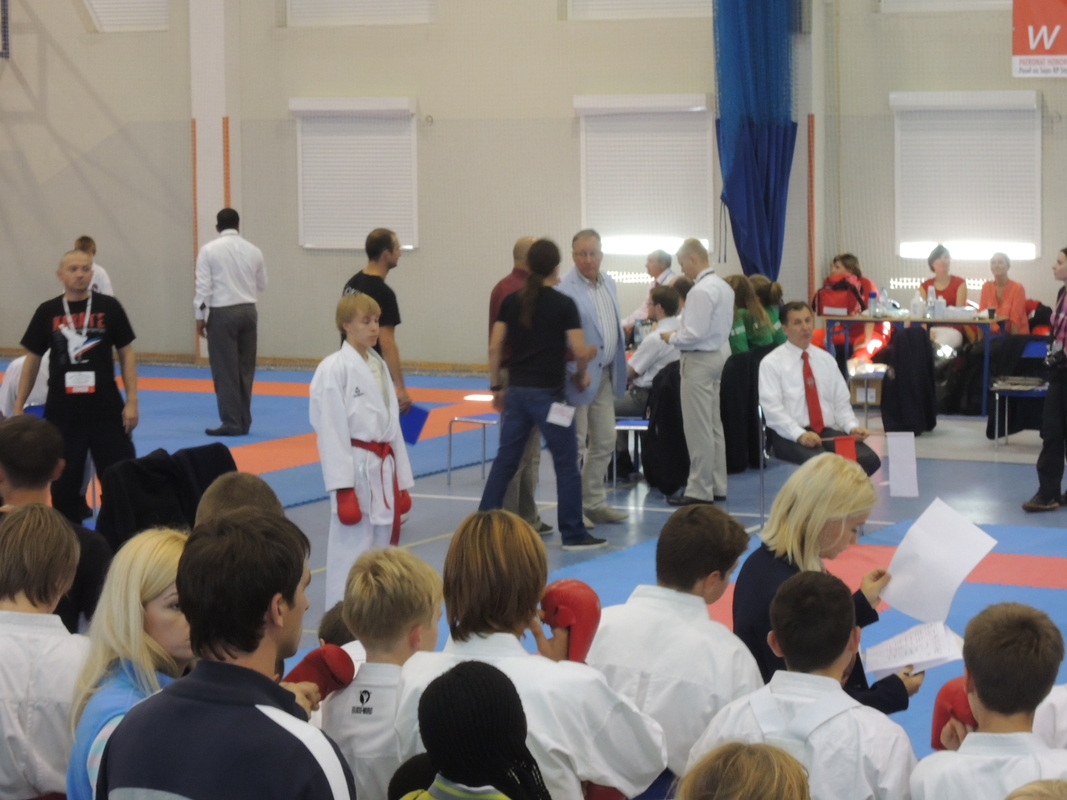 Puola Zukowo FSKA MM-2013 Suomen joukkueena kilpailijoiden osalta: Miska Salonen Ylöjärven Shotokanista, Tuomas Suur-Inkeroinen Nurmijärven Shotokanista ja Sensei Marko Luotolinna Sipoon Gijomonkaista . Miska ja Tuomas ottelivat kumitessa ja Marko katassa. Torstaina lähtö Turun kentältä lentokoneella Gdanskiin. Lentoaika n.1,5 tuntia joka meni äkkiä. Kentältä oli järkätty kisaisännän puolesta linja-auto kyyti hotellille eli perille päästiin helposti. Hotelli oli hyvä ,tosin ”hivenen” syrjässä. Kisapaikalle oli aina mentävä joko hotellin taksilla tai kisajärjestäjän bussi kyydillä. Torstaina ehdimme illalla katsomaan Dan-testejä. Testissä oli mukana kokelaita aina ensimmäisen Danin suorittajista 6.Danin suorittajiin. Testi oli hyvin perustekniikka-painotteinen sisältäen monta kataa. Kumitea ei ollut ollenkaan. Kokeen otti vastaan Shihan Funakoshi. Perjantaina alkoivat varsinaiset kilpailut. Avajaisissa mukana paljon Puolan ja Zukowon poliittista johtoa, mm. Puolan urheiluministeri, sekä poliisin ja armeijan johtohenkilöitä. Yhteenvetona voisi olla että merkittävät kilpailut Puolalle. Urheilijoita paikalla oli vajaa tuhat ja yleisöä niin paljon kuin paikalle mahtui. Perjantaina kilpailumuotona oli joukkuekata ja –kumite. Lauantaina oli meidän poikien vuoro. Suomen joukkuetta edustivat Miska Salonen sekä Tuomas Suur-Inkeroinen . Miska pääsi kolmannelle kierrokselle asti kunnes tappio tuli ehkä hivenen kyseenalaisen tuomion jälkeen. Vastustaja sai pisteen kurkkuun lyönnistä mikä pitäisi olla rangaistuksen paikka. Mutta matsit oli kovia ja ehkä jotain jäi hampaankoloon seuraavia matseja varten. Tuomaksen urakka sujui kokolailla samoin kuin Miskankin, tie nousi pystyyn kolmannella kierroksella hieman kyseenalaisen tuomion jälkeen. Yhtäkaikki, molemmilla pojilla tosi hyvät matsit ja hyvällä shotokan-hengellä mentiin.. Lauantai-iltana olimme hotellilla koko joukkue syömässä kun saatiin ulkomaan vieraita pöytäämme. Shihan Funakoshi tuli kyselemään mistäpäin olemme tulleet ja kun kuuli että olemme Suomesta, sanoi tulevansa ensi vuonna pitämään seminaaria tänne, odotamme mielenkiinnolla!! Sunnuntaina oli lähtö niin aikaisin että kisoihin emme enää ehtineet. Sunnuntaina olisi ollut vuorossa aikuisten sarjat ja tatamilla Sensei Luotolinna. Kisa oli mennyt hyvin ja Marko oli jäänyt niukasti neljän parhaan ulkopuolelle. Harmi ettemme olleet kannustamassa, jäikö siitä kiinni…