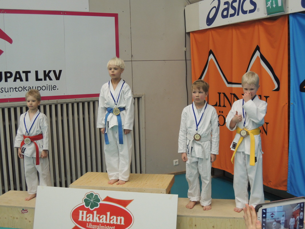 12-13-vuotiaiden alempivöisten sarjan voitti hienosti Jimi Lehtonen ja saman ikäisten ylempien vöiden sarjassa Jimi Landström ja Miska Salonen katasivat itselleen pronssit.