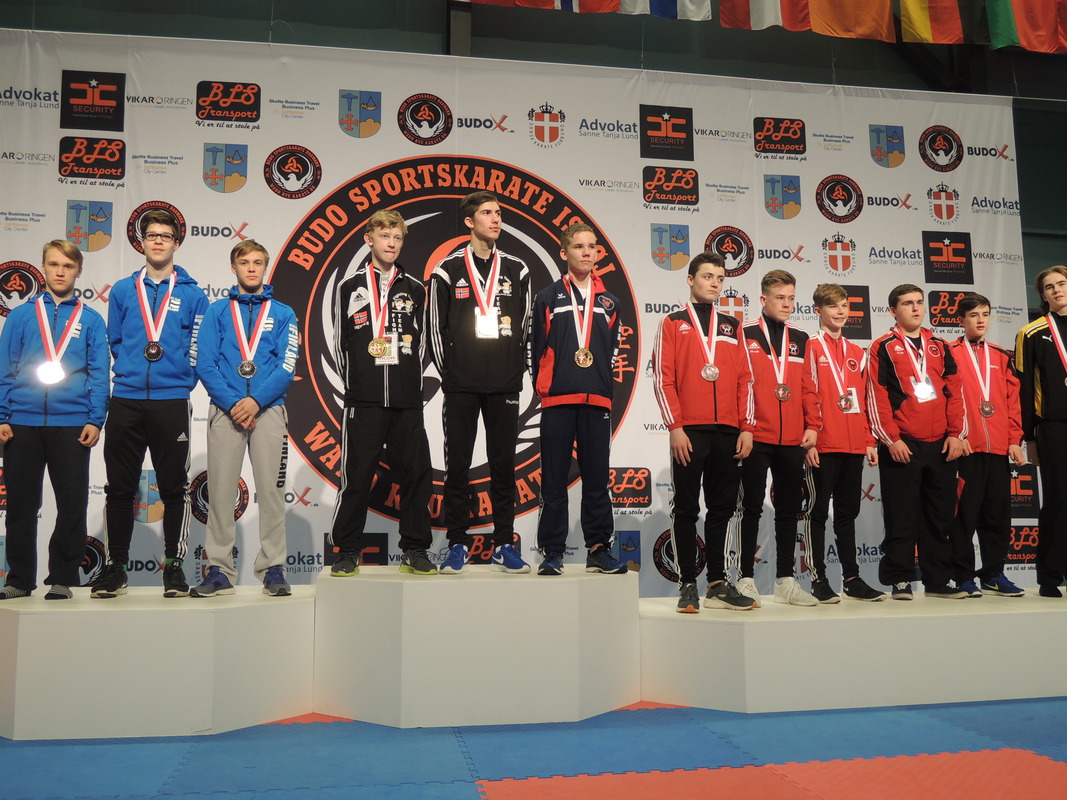 Kadettien joukkue hopea. Joukkueessa Miska ja Miikka sekä Lahden karaten Björn Kulovuori
