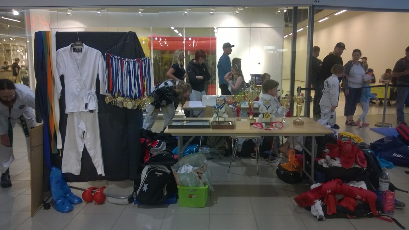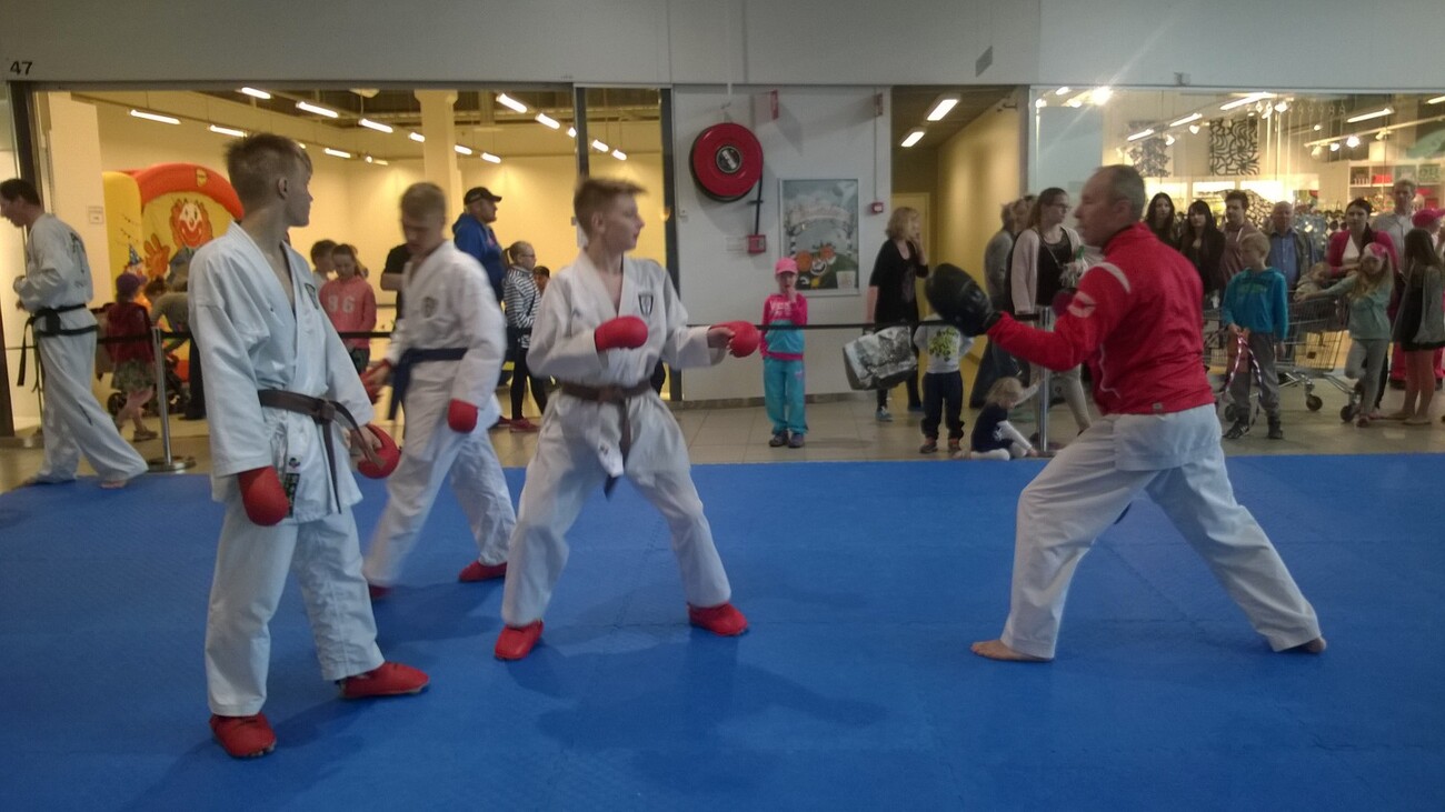 Ylöjärven markkonoita vietettiin jälleen kauppakeskus Elon pihamaalla ja sisätiloissa. Ylöjätven Shotokan oli mukana menossa yhdessä taekwon-don kanssa. Pidimme useita lajiesittelyitä päivän aikana. Lajia oli esittelemässä Topias, Lauri, Veeti, Nina, Joni, Nuutti, Miska ja Miikka. Mika toimi teknisenä tukena. Valmentajina mukana oli Timo, Tero ja Teea. |