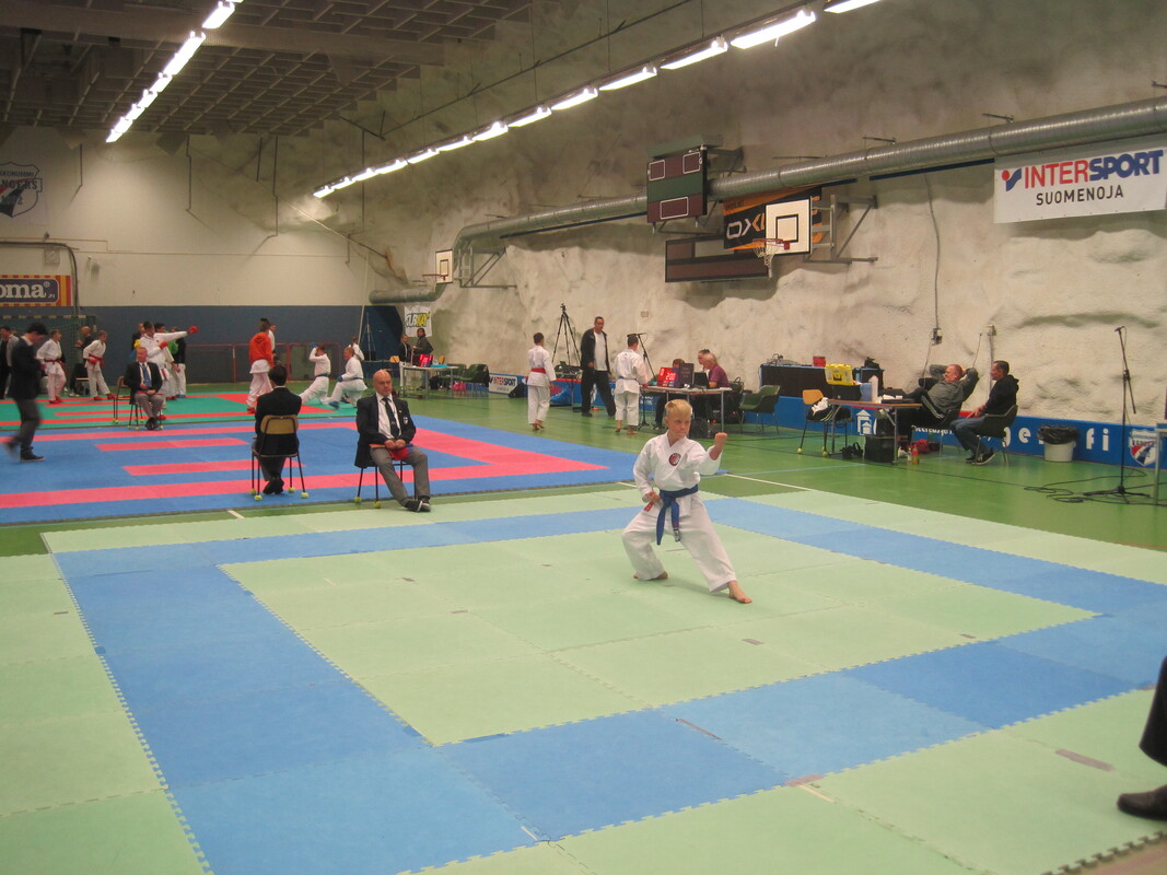 Kirkkonummen Karate Open kilpailtiin lauantaina 24.9. Kilpailijoita oli reilut 130 ja 18 eri seuraa oli edustettuna. Ylöjärven Shotokanista mukaan lähti kymmenen kilpailijaa, joista neljä oli ensikertalaista. Kotiin viemisinä neljä hopeaa ja kaksi pronssia. Katassa 10-11-vuotiaiden sarjassa kaikki saman ikäiset ottelivat sammassa sarjassa. Ylöjärveltä sarjassa oli kuusi kilpailijaa, joista neljä ensikertalaista. Kokemusta sarjasta otti Kristo Valkia, Topias Paattimäki, Luukas Nummela ja Lauri Heinonen. Joni Lehtonen otteli itsensä finaaliin otellen hopean arvoisesti ja Veeti Luoma pääsi keräilyihin otellen pronssin arvoisesti. Kumitessa Junnujen -76 kiloisten sarjassa otteli Mauricio Aviles ja Miska Salonen. Mauricio otteli ottelun Hämeenlinnan Niko Manteretta vastaan kokien 3-1 tappion Nikoa vastaan. Miska aloitti ottelunsa Lahden Mikael Rankia vastaan voittaen ottelun 11-2. Seuraavassa ottelussa Hämeenlinnan Maximillian Ollilaa vastaa Miska voitti 2-0. Finaalissa vastaan tuli Nurmijärven Tuomas Suur-Inkeroinen. Tuomas vei ottelun 5-1, Miskalle hopeaa sarjasta. Kadettien -63 kiloisten sarjassa Nuutti Vuoren vastustaja luovutti ensimmäisen ottelun Nuutin edeten kaaviossa eteenpäin. Seuraavaksi vastaan tuli Espoon Touko Teittinen. Nuutti voitti ottelun 9-1. Jami Kulmala vei seuraavan ottelun 7-1, Jamin mennessä finaaliin Nuutti meni keräilyihin. Keräilyissä vastaan tuli Porin Servo Kouichi, jonka Nuutti vei 8-0. Pronssiottelussa vastaan tuli Miikka Kulmala joka vei pronssin ottelun lopussa tehdyllä pisteellä. Kadettien +63 kiloisten sarjassa otteli Miikka Salonen. Ensimmäisen ottelun Miikka vei Lohjan Rasmus Kiiskistä vastaan 4-6. Seuraavaksi vastaan tuli Mäntsälän Sisu Ågren, Miikan vieden ottelun 8-1. Finaalissa vastaan tuli Rajakylän Johannes Korpela. Johannes vei ottelun 9-5, joten Miikalle sarjasta hopeaa. 10-11-vuotiaiden -35 kiloisten sarjasta kävi kokemusta ottamassa Veeti Luoma. Saman ikäluokan -42 kiloisten sarjassa kokemusta kävi ottamassa Kristo Valkia ja Lauri Heinonen. Joni Lehtosta kaavio suosi ja hän pääsi suoraan toiselle kierrokselle. Joni kärsi 4-5 tappion viimesekunnilla, otellen pronssin arvoisesti. Sama ikäluokka jatkui vielä +42 sarjassa. Sarjasta pronssin arvoisesti otteli Topias Paattimäki ja Luukas Nummela otteli hopean arvoisesti. |