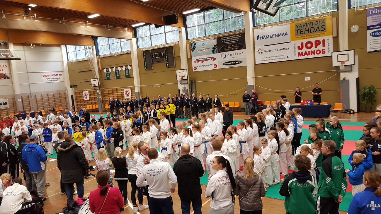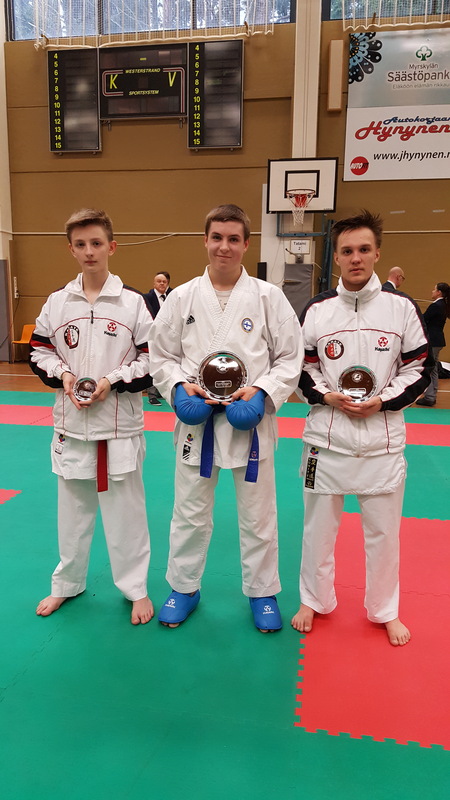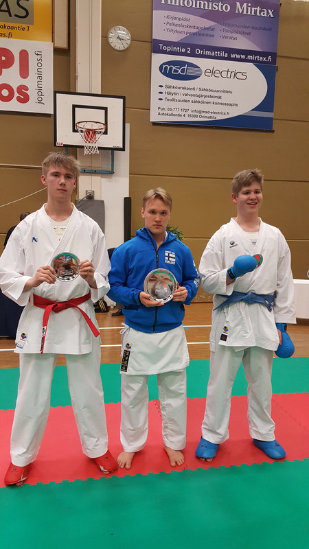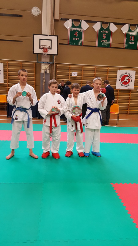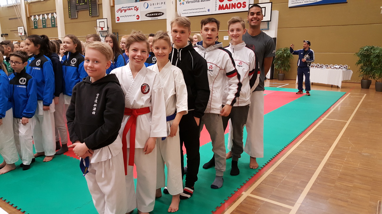 Orimattilan junnuturnaukseen osallistui noin 170 kilpailijaa 22 eri seurasta. Ylöjärveltä kilpailuihin lähti seitsemän kilpailijaa kannustusjoukkoineen. Kilpailut aloittivat kata sarjat. 10-11-vuotiaiden sarjassa katasi Lauri Heinonen ja Veeti Luoma. Lauri voitti ensimmäisen katansa puhtaasti 3-0. Seuraavan katansa hän hävisi, eikä mahdollisuutta keräilyihin tullut. Veeti hävisi ensimmäisen katansa sarjan voittajalle, ja näin ollen hän pääsi keräilyihin. Keräilyissä hän kohtasi Lauri Vakkilaisen Imatralta. Veeti voitti katansa voittaen samalla sarjasta pronssia. 12-13-vuotiaiden katasarjaan osallistui Topias Paattimäki. Topiaksella kävi tuuri kun hän pääsi suoraan toiselle kierrokselle. Topias voitti ensimmäisen katansa puhtaasti, mennen finaaliin. Finaalissa vastaan tuli Hämeenlinnan Toni Vainikka. Topias teki hienon suorituksen, mutta katan sääntöihin kuuluva kummarrus unohtui jännityksen keskellä ja Topiaksen suoritus hylättiin, joten hopeaa sarjasta. Katan 14-17-vuotiaiden sarjasta kokemusta haki Mauricio Aviles. Kumiten 10-11-vuotiaiden alle 41 kiloisten sarjassa otteli Lauri Heinonen ja Veeti Luoma. Molemmilla pojilla oli hyvää yritystä, mutta se ei tällä kertaa riittänyt etenemiseen kilpailuissa. Kumiten 12-13-vuotiaiden alle 43 kiloisten sarjassa otteli Topias Paattimäki. Topias hävisi ensimmäisen ottelunsa sarjan voittajalle, joten hän pääsi keräilyihin, jossa vastaan tuli Oulun Eetu Latvala. Ottelu oli tiukka, mutta hienosti Topias taisteli itselleen sarjasta pronssin. Kadettien alle 16-vuotiaiden +68 kiloisten sarjassa otteli Miikka Salonen. Sarja oli pieni ja se käytiin siten, että kaikki ottelivat toisiaan vastaan (pooli). Miikka teli tasaista työtä voittaen ottelunsa ja samalla sarjasta kultaa. Junioreiden alle 18-vuotiaiden alle 68 kiloisten sarjassa otteli Nuutti Vuori ja Miska Salonen. Tämäkin sarja käytiin poolina. Miska voitti kaksi ottelua ja hävisi yhden ottelun sarjavoittaja Tuomas Suur-Inkeroiselle. Nuutti voitti yhden ja hävisi kaksi ottelua. Pisteet laskettua Miskalle sarjasta hopea ja Nuutille pronssi. Saman ikäluokan +68 kiloisten sarjassa otteli Mauricio Aviles. Mauri hävisi ensimmäisen ottelun sarjavoittajalle, joten hän meni keräilyihin. Keräilyottelussa Mauri otti liikaa varoituksia ja lensi ulos ottelusta. |