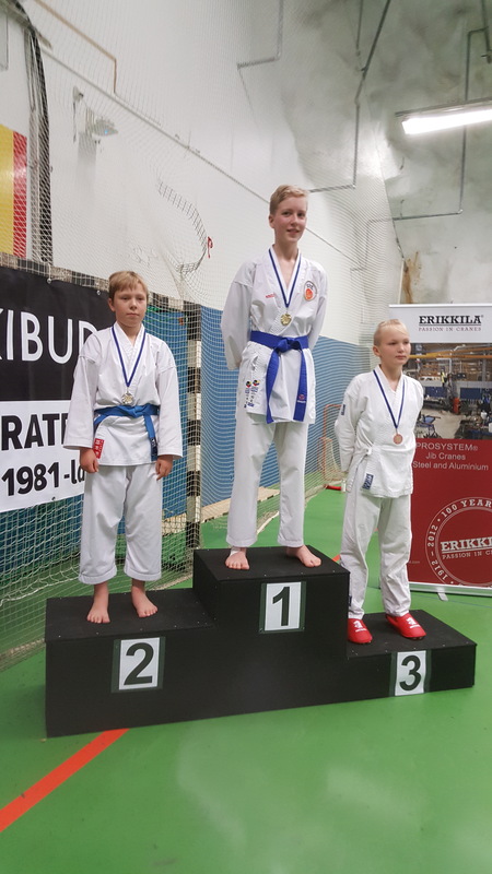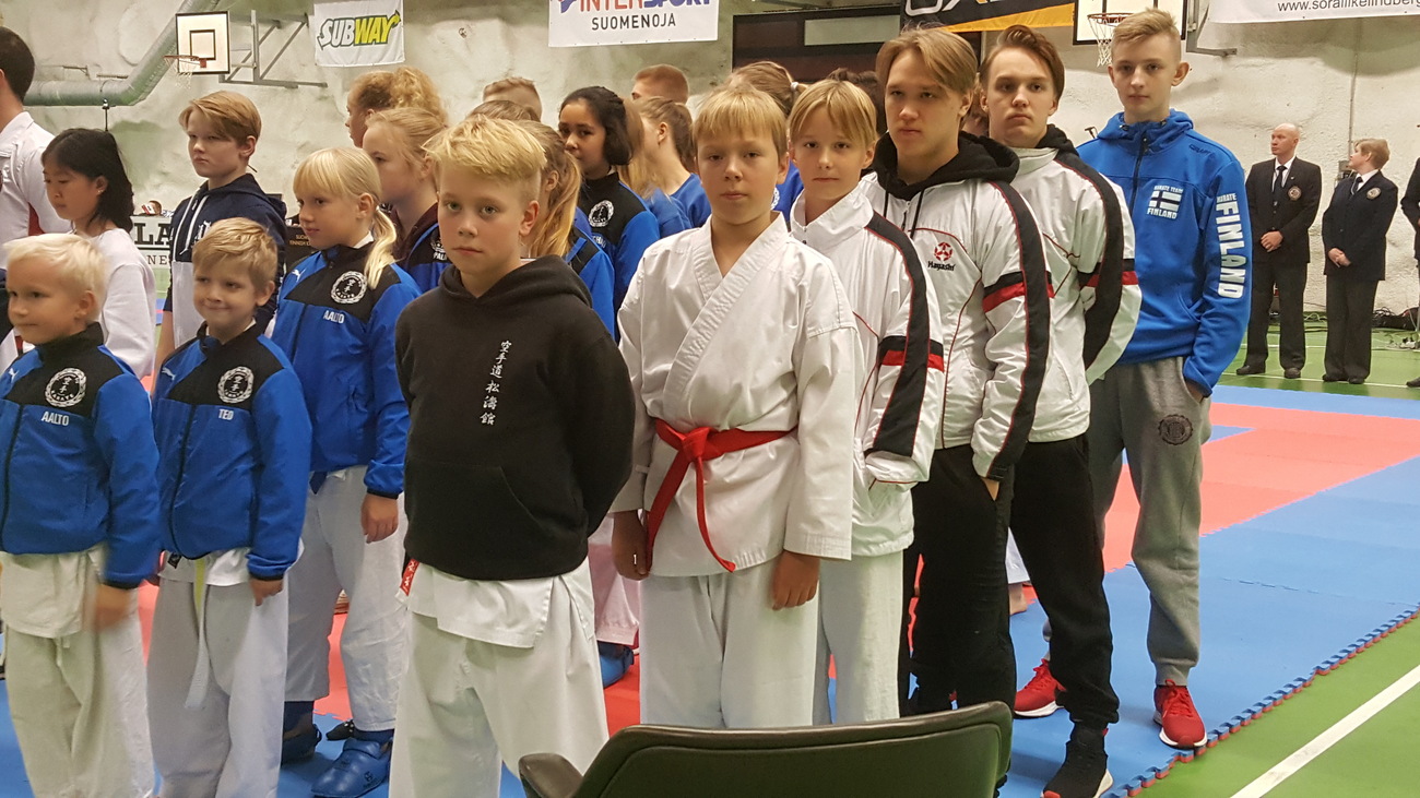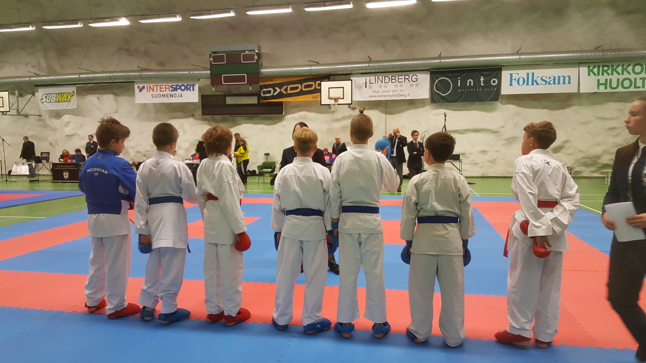Kirkkonummen karate Open käytiin 21.10 Kirkkonummen väestösuojassa. Ylöjärveltä kilpailemaan lähti kuusi kilpailijaa, valmentajina Tero ja Teea sekä hyvä joukko vanhempia kannustusjoukoissa. Osallistujia oli mukana 18 eri seurasta. Kilpailu kuului Suomen-Cupin kilpailuihin. Kirkkonummen kilpailut olivat Cupin neljäs kilpailu. Seuraava Suomi-Cupin kilpailu käydään Porissa. Kilpailut aloittivat alle 12 vuotiaiden kumitesarjoilla. Alle 12-vuotiaiden kevyemmässä painoluokassa kilpaili Veeti Luoma ja Lauri Heinonen. Molemmat pojat kärsivät tappion ensimmäisellä kierroksella ja pienten sarjassa ei käyty keräilyitä, joten molempien matsit olivat matsattu. Luukas Nummela otteli alle 12-vuotiaiden raskaammassa sarjassa. Ensimmäisen ottelun Luukas voitti Mäntsälän karaten Santeri Saimia vastaan. Finaalissa vastaan tuli Porin Sami Järvenpää. Sami oli tällä kertaa parempi, joten hopeaa Luukakselle. Alle 12-vuotiaiden katasarjassa otteli Luukas, Lauri ja Veeti. Lauri pääsi suoraan toiselle kierrokselle. Veeti ja Luukas karsiutuivat ensimmäisellä kierroksella. Lauri hävisi semifinaalissa Lohjan Aapo Lindgreenille ja sarjasta pronssi. Alle 16-vuotiaiden +65 kiloisten kumitesarjassa otteli Miikka Salonen. Miikka voitti ensimmäisellä kierroksella 9-0 Mäntsälän Sisu Ågrenin. Finaalissa vastaan tuli Sportkaraten Johannes Korpela. Ottelu oli tiukka, mutta Miikka otti voiton pisteillä 3-1. Alle 18-vuotiaiden -68 kiloisten sarjassa otteli Nuutti Vuori ja Miska Salonen. Miska meni suoraan toiselle kierrokselle. Nuutti otteli ensimmäisen ottelun Espoon Cedric Collianderia vastaan. Nuutti voitti ottelun 8-0. Toisella kierroksella vastaan tuli Sipoon Tom von Schanz. Nuutti voitti ottelun niin ikään 8-0 ja meni finaaliin. Miskalle vastaan tuli Espoon Touko Teittinen. Miska voitti ottelun 9-0 mennen Nuutin seuraksi finaaliin. Finaalissa Miska voitti Nuutin lukemin 8-0. |
