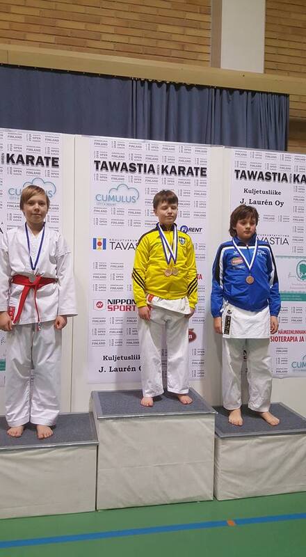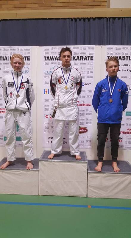 Karaten kotimaisen kilpailukauden avasi Hämeenlinnassa käytävä Tawastia Open. Tawastia Open on ensimmäinen Karaten Suomi-Cupin osakilpailu. Ylöjärveltä kilpailemaan lähti seitsemän kilpailijaa. Pieni joukkueemme oli kokonaistuloksissa hienosti sijalla 3. Päivän ensimmäisistä kilpailusuorituksista vastasi Veeti Luoma ja Lauri Heinonen, kisaten poikien alle 12-vuotiaiden -42 kiloisten sarjassa. Veetillä kävi arpaonni ja hän pääsi suoraan toiselle kierrokselle ja toisen ottelun hän voitti 3-0, mennen finaaliin. Samassa sarjassa otteleva Lauri voitti ensimmäisellä kierroksella vastustajansa 7-0 ja toisella kierroksella vastustaja kaatui luvuin 2-0. Finaalissa vastakkain oli Veeti ja Lauri. Tuloksen ollessa Veetille 5-0, Veeti lähti lyömään ja Lauri tuli vastaan. Lauria osui sen verran pahasti, että ottelu keskeytettiin ja Veeti voitti ottelun. Seuraavassa sarjassa tulikasteen sai ensikertalainen Miska Vastamäki. Miska otteli alle 10-vuotiaiden avoimessa sarjassa. Ensimmäisen ottelun Miska voitti hienosti 4-2. Seuraavassa ottelussa tuli tappio pistein 3-1. Vastustaja meni finaaliin, joten Miskalle avautui mahdollisuus keräilyihin. Keräily- ja pronssi ottelu päättyi tasan 2-2, mutta Miska Voitti pronssin senshun, ensimmäisen pisteen turvin. Alle 12-vuotiaiden +42 kiloisten sarjassa otteli Luukas Nummela. Ensimmäisen ottelun Luukas voitti 2-0, mennen finaaliin. Finaalissa kumpikaan ottelija ei saanut pisteitä, joten ottelu ratkaistiin lippuäänestykseen. Vastustaja vei ottelun nimiinsä lipuin 5-0, joten Luukakselle sarjasta hopea. Alle 12-vuotiaiden alle kolmevuotta harrastaneiden kata sarjassa otteli Luukas ja Veeti. Luukas pääsi suoraan finaaliin ja Veeti otteli ensimmäisen ottelunsa voittaen sen lipuin 2-1, mennen Luukaksen seuraksi finaaliin. Finaalin Veeti voitti lipuin 3-0. Alle 18-vuotiaiden -61 kiloisten sarjassa otteli Miska Salonen. Sarja käytiin poolina, jossa kaikki kilpailijat ottelevat toisiaan vastaan. Miska voitti molemmat ottelunsa, voittaen sarjasta kultaa. Saman ikäluokan +68 kiloisten sarjassa ottelu Miikka Salonen. Ensimmäisessä ottelussa ei tullut pisteitä ja voittaja selvisi lippuäänestyksellä. Miikka vei ottelun lipuin 4-1, mennen finaaliin. Finaalissa vastaan tuli Hämeenlinnan Maximillian Ollila, hän vei ottelun nimiinsä 5-0, joten Miikalle sarjasta hopea. Alle 18-vuotiaiden -68 kiloisten sarjassa otteli Nuutti Vuori. Ensimmäisessä ottelussa vastaan tuli Miikka Kulmala. Nuutti voitti ottelun 2-0, mennen finaaliin. Finaalissa vastaan tuli Jami Kulmala. Nuutti voitti ottelun 1-0 voittaen sarjasta kultaa. |