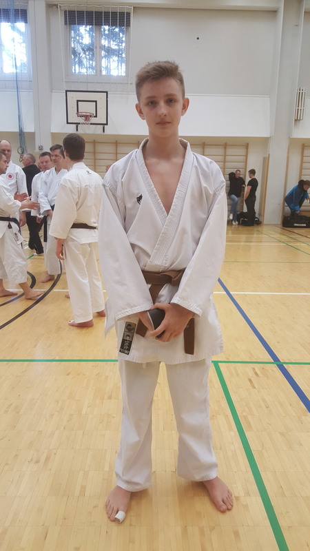 Kevään kollegion leiristä nautittiin Kirkkonummella hyvällä meiningillä isolla porukalla. Leirin lopuksi Dan-testit. Seurasta kokelaana Nuutti Vuori. Nuutti hienolla suorituksella 1.Dan.