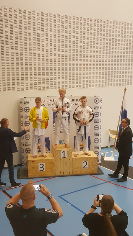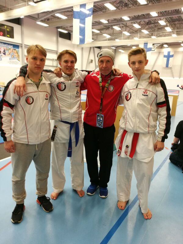 Karaten Suomenmestaruuksista kilpailtiin Lohjalla 14.4. Ylöjärveltä mestaruuksia lähti jahtaamaan viisi kilpailijaa. Liikesarja eli kata aloitti kilpailun. Ylöjärveläisistä ensimmäisenä osallistui mestaruus jahtiin Lauri Heinonen ja Veeti Luoma. He pääsivät osallistumaan alle 14-vuotiaiden kilpailuihin, vaikka molemmat olivat vielä 11-vuotiaita. Ensimmäisellä kierroksella Veeti teki katan, jion. Siinä Veetille tuli vastaan Lohjan Aapo Kirjavainen. Aapo vei otteluvoiton ja myöhemmin hän meni myös finaaliin, joten Veeti pääsi keräilyihin sarjasta. Lauri pääsi suoraan toiselle kierrokselle, jossa vastaan tuli Lohjan Jesse Aaltonen. Lauri teki ensimmäisenä katana empin. Vahva suoritus ei riittänyt Jesseä vastaan, mutta Laurillekin tuli mahdollisuus keräilyihin, kun Jesse meni finaaliin. Keräilyissä Veeti voitti seuraavan kierroksen katalla empi. Paikasta pronssi otteluun Veetille vastaan tuli Oulun Akseli Takala. Veeti teki katan bassai sho, liput menivät Akselille numeroin 4-1. Lauri teki katan Jion, mutta hävisi ottelun 4-1 Porin Sami Järvenpäätä vastaan. Ensimmäisenä ottelut eli kumiten aloitti alle 18-vuotiaiden +68 kiloisten kovatasoisessa sarjassa Miikka Salonen. Miikalle kävi arpaonni ja hän pääsi suoraan toiselle kierrokselle. Ensimmäisessä ottelussa vastaan tuli Hämeenlinnan Maximilliam Ollila. Omaa jännitystä toi otteluun Miikan ja Maxin aikaisemmat kohtaamiset, joka Max on vienyt omiin nimiinsä. Ottelu oli tasainen, mutta nyt taktiikka toimi ja Miikka vei ottelun pistein 3-2, menen finaaliin. Finaalissa vastaan tuli Sportkaraten Johannes Korpela. Ottelun alkuun Miikka teki kaksi yhden pisteen suoritusta. Johannes tasoitti ottelua ja ottelu oli todella tasainen. Ottelu päättyi 4-3 Miikalle ja samalla Miikalle Suomenmestaruus jo toisen kerran peräkkäin. Seuraavaksi oteltiin alle 18-vuotiaiden -68 kiloisten sarja. Siinä otteli Nuutti Vuori. Nuutti otteli ensimmäisen ottelun Lohjan Jami Kulmalaa vastaan. Nuutti voitti ottelun 5-2, mennen samalla finaaliin. Finaalissa vastaan tuli Hämeenlinnan Tarmon Aaro Ahlgren. Pojat ottelivat todella tasaisesti, mutta Aaro sai otettua yhden tarvittavan pisteen viimeisellä sekunnilla ja hän voitti ottelun tuloksella 2-1, joten Nuutille SM-hopea. Miska Salonen otti osaa 17-vuotiaana ensimmäistä kertaa alle 21-vuotiaiden sarjaan. Sarjassa ottelun pituus on kolme minuuttia aikaisemman kahden minuutin sijaan. Alle 67 kiloisten sarjaan lisättiin vielä alle 75 kiloiset. Sarja käytiin poolina, eli kaikki ottelijat ottelivat toisiaan vastaan. Ensimmäisenä vastaan tuli Sportkaraten Jani Karkulainen. Jani voitti Miskan tuloksella 1-1 ensimmäisen pisteen turvin, samoin kuin seuraavan ottelun vei Nurmijärven Tuomas Suur-Inkeroinen tuloksella 5-3. Miska sai ottelun aluksi kolmen pisteen ipponin, etujalan uramawalla Tuomakselta, mutta ottelun edetessä Tuomaksen kokemus näkyi ja hän sai otettua tarvittavat pisteet voittoon, joten sarjasta pronssia Miskalle. Nuutti Vuori ja Miska Salonen ottelivat myös miesten alle 67 kiloisten sarjassa. Ensimmäisellä kierroksella otteli Nuutti Vuori ja Lahden Joni Kolari. Joni vei ottelun luvuin 4-0. Miska Salonen meni suoraan toiselle kierrokselle, jossa vastaan tuli Sportkaraten Jani Karkulainen. Miska sai mahdollisuuden edellisen sarjan revanssiin. Ottelussa ei paljon pisteitä tullut, mutta Miska vei ottelun pistein 1-0, mennen finaaliin. Finaalissa vastaan tuli Kuopion Petri Toivanen. Miska otto johdon Toivasta vastaan käsitekniikoilla 2-0, ollen nopeampi kuin vastustaja, mutta vastustajan kokemus näkyi ja taktisesti vastustaja osasi hyödyntää jatkossa Miskan pisteyrityksistä pistesuoritukset itselleen. Toivanen vei Suomenmestaruuden pistein 5-3, Miskalle siis sarjasta hopea. Viimeisenä ylöjärveläisistä oli ottelemassa alle 14-vuotiaiden -45 kiloisten sarjassa Veeti Luoma ja Lauri Heinonen. Veeti otteli Lahden Nooa Paukkolaa vastaan ensimmäisen ottelun. Nooa vei ottelun luvuin 8-0, eikä Veetille tullut mahdollisuutta keräilyihin. Lauri otteli ensimmäisen ottelunsa Renshin-Kanin Aarni Hännistä vastaan. Ottelu päättyi 1-0 Aarnille. Aarni ei edennyt finaaliin, joten Laurille ei tullut mahdollisuutta keräilyihin. |