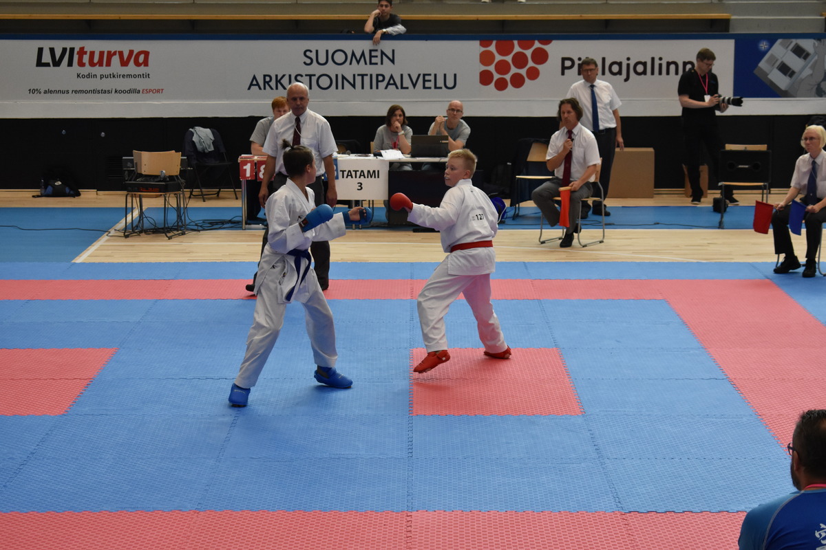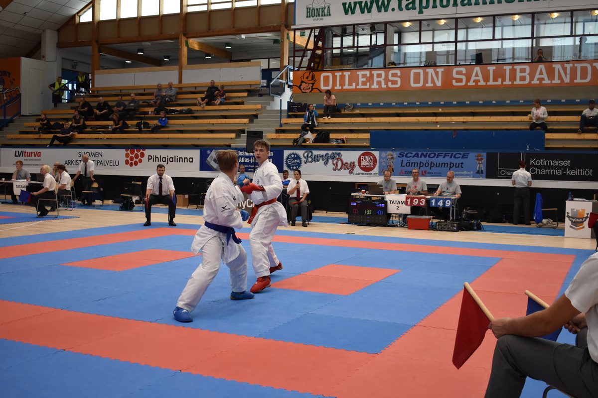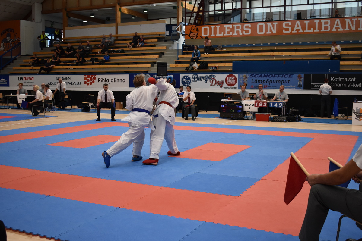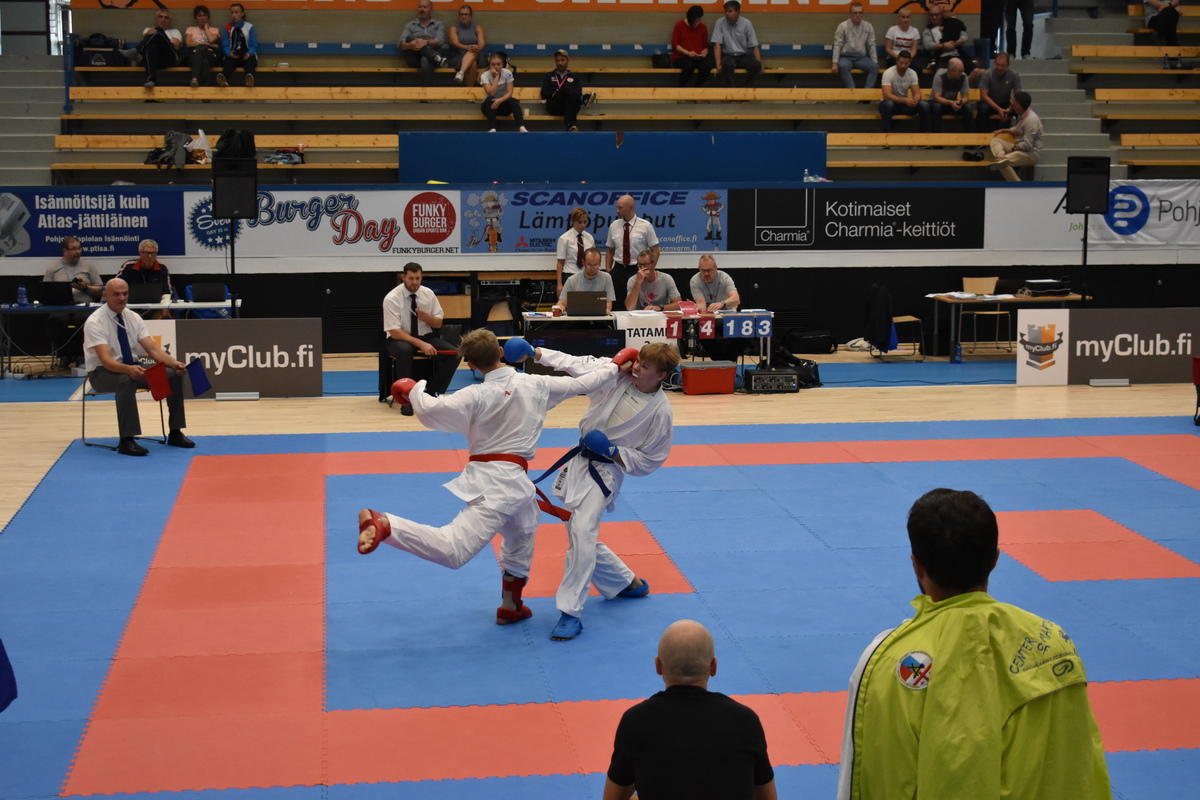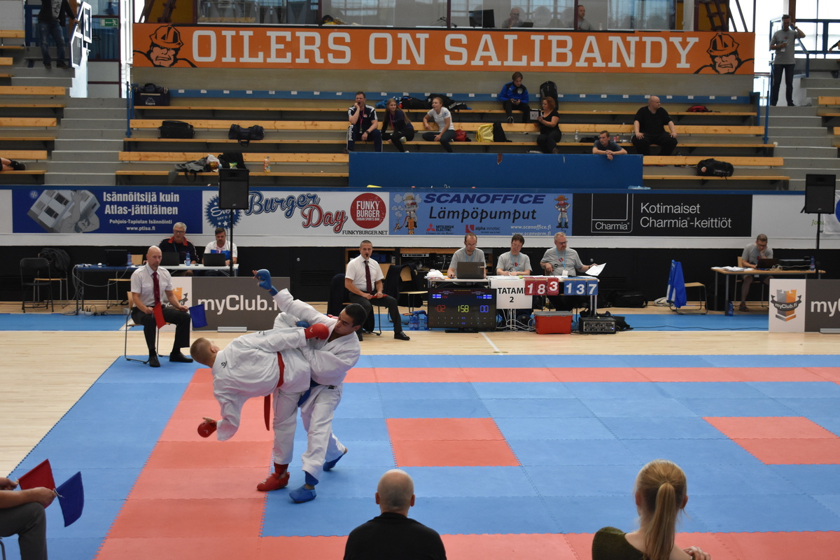 Finnish Open käytiin tänä vuonna Espoon Tapiolassa. Kilpailijoita saapui suomeen monesta eri maasta, kaukaisimmat jopa Ecuadorista asti. Ylöjärveltä kilpailuihin lähti neljä kilpailijaa valmentajineen ja kannustusjoukkoineen. Katasarjat aloittivat kilpailut ja Ylöjärveltä kataamassa oli Lauri Heinonen. Lauri osallistui alle 14-vuotiaiden katasarjaan. Lauri pääsi suoraan toiselle kierrokselle, ja ensimmäisenä Laurille tuli vastaan Jesse Aaltonen. Jesse voitti Laurin 5-0, Jesse meni finaaliin, joten Laurille avautui paikka keräilyihin. Keräilyottelussa Laurille vastaan tuli Kallio Veikka. Ottelu päättyi Veikalle 4-1 ja Laurin sijoitus sarjasta oli 7. Kumitessa Lauri Heinone otteli alle 14-vuotiaiden -52 kiloisten sarjassa. Ensimmäisessä ottelussa vastaan tuli ruotsin Magnusson Nore. Magnusson 4-1 ja Magnusson meni finaaliin ja Laurille tuli pääsy keräilyihin. Keräilyottelussa vastaan tuli Nooa Paukkola. Paukkola vei ottelun varmoin ottein tuloksella 7-0, joten Laurille sarjasta 5. sija. Miska Salonen otteli miesten -67 kiloisten sarja käytiin poolina, jossa kaikki ottelijat ottelivat toisiaan vastaan. Ensimmäisessä ottelussa vastaan tuli Lahmid Nadir. Ottelu päättyi ennen varsinaista otteluaikaa tulokseen 8-0. Toisessa ottelussa vastaan tuli Jani Karkulainen. Ottelu päättyi tasatilanteeseen 0-0. Ottelun voittaja selvitettiin lippu äänestyksellä ja liput menivät Miskalle 4-1. Miskalle sarjasta kaksi voittoa ja samalla sarjasta voitto. Miska Salonen otteli myös alle 21-vuotiaiden -67 kiloisten sarjassa. Sarja käytiin samoilla kilpailijoilla kuin edellinen sarja. Ensimmäisen ottelun Miska voitti Lahmid Nadirin 4-0 ja seuraava ottelu käytiin Jani Karkulaista vastaan. Karkulainen sai otettua ensimmäisen pisteen ja Miska sai tasoitettua tulokseen 1-1. Jani voitti ottelun ensimmäisen pisteen turvin. Miskalle sarjasta yksi voitto ja kun Jani Karkulainen otti kaksi voittoa, niin Miskalle sarjasta hopea. Seuraavaksi otteli Nuutti Vuori alle 18-vuotiaiden -68 kiloisten sarjassa, joka käytiin poolina. Ensimmäisessä ottelussa Nuutti otteli Jami Kulmalan kanssa. Ottelu päättyi Nuutille 2-1. Toisessa ottelussa vastaan tuli venäjän Fedorov Nikita. Nikita vei ottelun luvuin 6-0. Kolmannessa ottelussa Nuutille vastaan tuli Miikka Kulmala. Miikka voitti ottelun luvuin 2-0. Kun voitot olivat laskettu yhteen niin Nuutti otti sarjasta pronssin. Viimeisenäi otteli Miikka Salonen alle 18-vuotiaiden -76 kiloisten sarjassa. Ensimmäisessä ottelussa vastaan tuli venäjän Valery Kosenkov. Miikka hävisi ottelun luvuin 0-4. Venäläinen meni finaaliin asti, joten Miikalle tuli mahdollisuus keräilyihin. Keräilyissä vastaan tuli Maksimilliam Ollila. Miikka sai otettua ensimmäisen pisteen, mutta Max sai otettua seuraavat kolme pistettä, tiputtaen Miikan jatkosta. Miikalle sijoituksena viides sarjasta. |