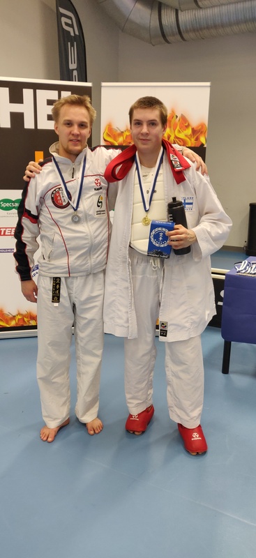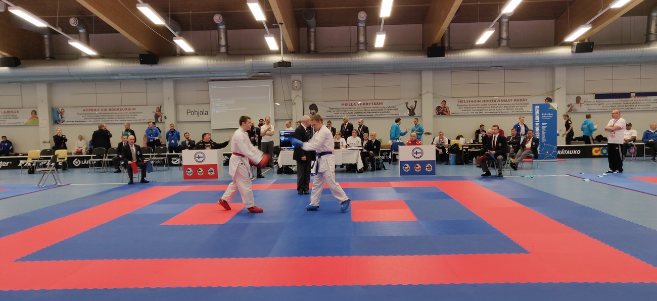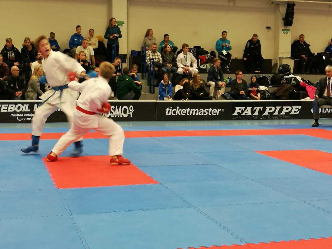 Karaten kilpailukausi käynnistyi lauantaina alle 21- vuotiaiden karatekilpailuiden merkeissä Tapanilan urheilukeskuksessa Helsingissä. Kilpailijoita kilpailuissa oli reilu 160, kolmestakymmenestä eri seurasta. Suomalaisten lisäksi mukana oli kilpailijoita Virosta ja Latviasta. Ylöjärveltä kilpailemaan lähti neljä urheilijaa, kaksi valmentajaa ja innokas kannustusjoukko. Kilpailut alkoivat kata-, eli liikesarjoilla. Katan alle 14-vuotiaiden sarjaan osallistui Veeti Luoma ja Lauri Heinonen. Molemmat pojat tekivät ensimmäisellä kierroksella katan nimeltä Unsu. Molemmat putosivat valitettavasti heti ensimmäisellä kierroksella ja mahdollisuutta keräilyihin ei tullut. Kumiten, eli ottelusarjat aloitettiin alle 14-vuotiaiden -52 kiloisten sarjalla, jossa kilpailivat Lauri Heinonen ja Veeti Luoma. Lauri Heinonen otteli Imatran Lauri Vakkilaista vastaan. Ottelu oli tasainen ja päättyi tulokseen 0-0, lippuäänestyksen Heinosen Lauri hävisi 4-1, mutta onnekseen hän pääsi keräilyihin. Keräilyottelun Lauri voitti Oulun Akseli Takalaa vastaan 1-0, mennen samalla pronssiotteluun. Veeti otteli ensimmäisen ottelun Helsinkiläistä Aarni Hännistä vastaan. Aarni voitti ottelun ja meni samalla finaaliin, joten Veetille pääsi suoraan pronssiotteluun. Pronssiottelussa ottelivat seuran omat pojat mitalista. Pojat ottelivat tasaväkisesti, mutta Lauri vei pronssin tuloksella 2-1. Junioreiden alle 18-vuotiaiden +68 kiloisten yhdistetyssä sarjassa otteli Miikka Salonen. Sarja käytiin poolina, jolloin kaikki kilpailijat ottelivat toisiaan vastaan. Ensimmäisessä ottelussa Miikalle vastaan tuli Hämeenlinnan Maximilliam Ollila. Miikka sai otettua kolmen pisteen etumatkan, mutta Max sai kavennettua sen otettuaan kahdenpisteen suorituksen. Otteluajan päättyessä Miikka johti ottelia 3-2, voittaen ottelun. Seuraavassa ottelussa Miikalle vastaan tuli Kuopion Eetu Tuovinen. Eetu voitti ottelun 4-0. Viimeisessä ottelussa Miikalle vastaan tuli Imatran Arttu Koskinen. Miikka vei ottelun luvuin 4-0. Kun sarja oli käyty laskettiin ottelijoiden otteluvoitot, Voitot menivät tasan kolmen ottelijan kanssa, joten seuraavaksi laskettiin ottelijoiden tekemät pisteet, jonka jälkeen voittaja oli selvillä. Sarjasta voiton vei Kuopion Eetu Tuovinen, hopeaa sai Miikka Salonen ja pronssia Maximilliam Ollilalle. Alle 21-vuotiaiden avoimessa sarjassa otteli Miska Salonen. Tämäkin sarja käytiin poolina. Ensimmäisessä ottelussa Miska sai vastaansa Jyväskylän Atte Kukkulan. Atte meni ottelussa aluksi kahden pisteen johtoon ja sai ensimmäisen pisteen edun itselleen. Miska tasoitti 2-2, mutta se ei riittäisi tasapeliin, koska Atella oli ensimmäisen pisteen etu. Viimeisellä 15 sekunnilla Atte otti virheen itselleen rajan ylityksestä ja hän menetti ensimmäisen pisteen etunsa. Ottelu päättyi 2-2 tulokseen ja voittaja selvitettiin lippuäänestyksellä. Miska sai kolmelippua, voittaen ottelun. Sarjan viimeinen ottelu käytiin superfinaalissa, jossa käytiin valikoitujen sarjojen finaalit. Miskalla vastaan tuli Nurmijärven Tuomas Suur-Inkeroinen. Ottelu oli tasaväkinen ja päättyi Tuomakselle 1-0, joten Miskalle sarjasta hopeaa. |